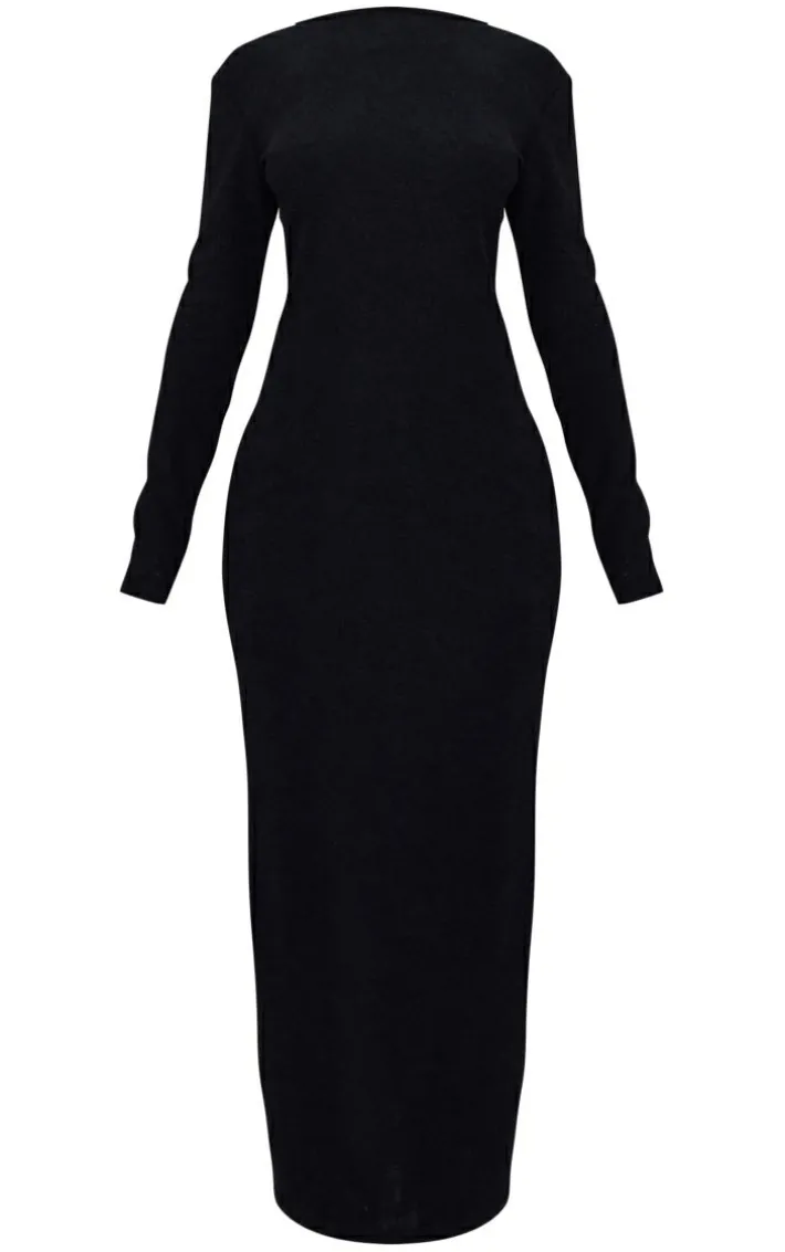 Get that effortlessly chic vibe on-point with this dress. Featuring a black towelled material with a maxi length and a figure hugging fit. Team with some slip on heels and a statement bag to complete this chic look everyone will be obsessed with.