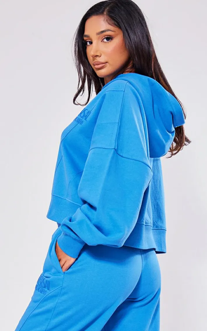 Say hello to your new season staple with this petite blue premium tonal print panelled boxy hoodie. Brought to you in a blue premium material with a tonal print design, what more could you want? This boxy hoodie has a panelled detail that is here to banish any of your what to wear dilemmas. Team wit the matching sweatpants and a statement bag for a look that have you being the topic of everyone’s conversation.