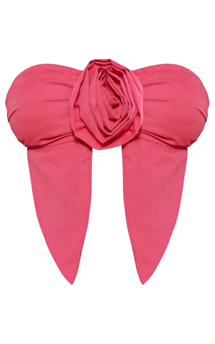 Make heads turn for all the right reasons in this petite bright pink bandeau crop top with flower detail. Brought to you in a bright pink material with a bandeau neckline, a cropped fit and flower detail for that statement touch of glam, how can you resist? Pair this crop top effortlessly with the matching skirt, heels and gold accessories for an occasion look they won’t forget.