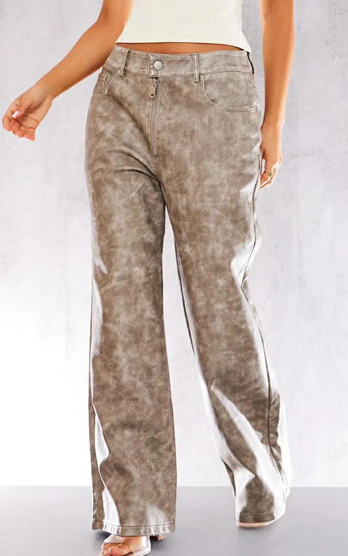 Add some edge to your outfit of the day with these petite brown washed faux leather low rise wide leg pants. These pants are brought to you in a brown washed faux leather material with a low rise design and a wide leg fit, what’s not to love? These pants are perfect for any occasion. Complete the look and pair these with a white t-shirt, high heels and accessories for a flawless finish.