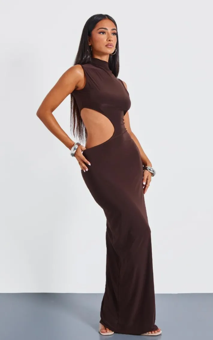 Look the best dressed at every occasion with this petite chocolate bodycon slinky cut out maxi dress. You can never have too many dresses, and this slinky material with a cut out detail and unreal chocolate shade needs to be added to your collection. Whether you want to be the center of attention or turn heads for the right reasons, this dress is for you. Style this with your fave heels and silver accessories to set the tone for all of thefashion lovers.