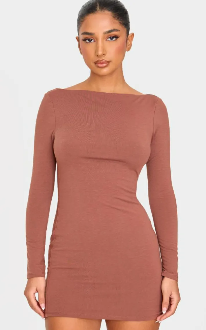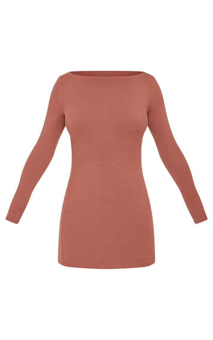 When the weekend calls so does this petite chocolate contour jersey boat neck long sleeve dress. Brought to you in a chocolate hue contour jersey material with a boat neckline and long sleeves, this dress is all the new you need. Style with knee high boots and simple accessories for a look like no other.
