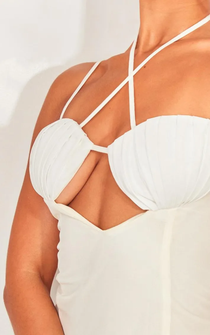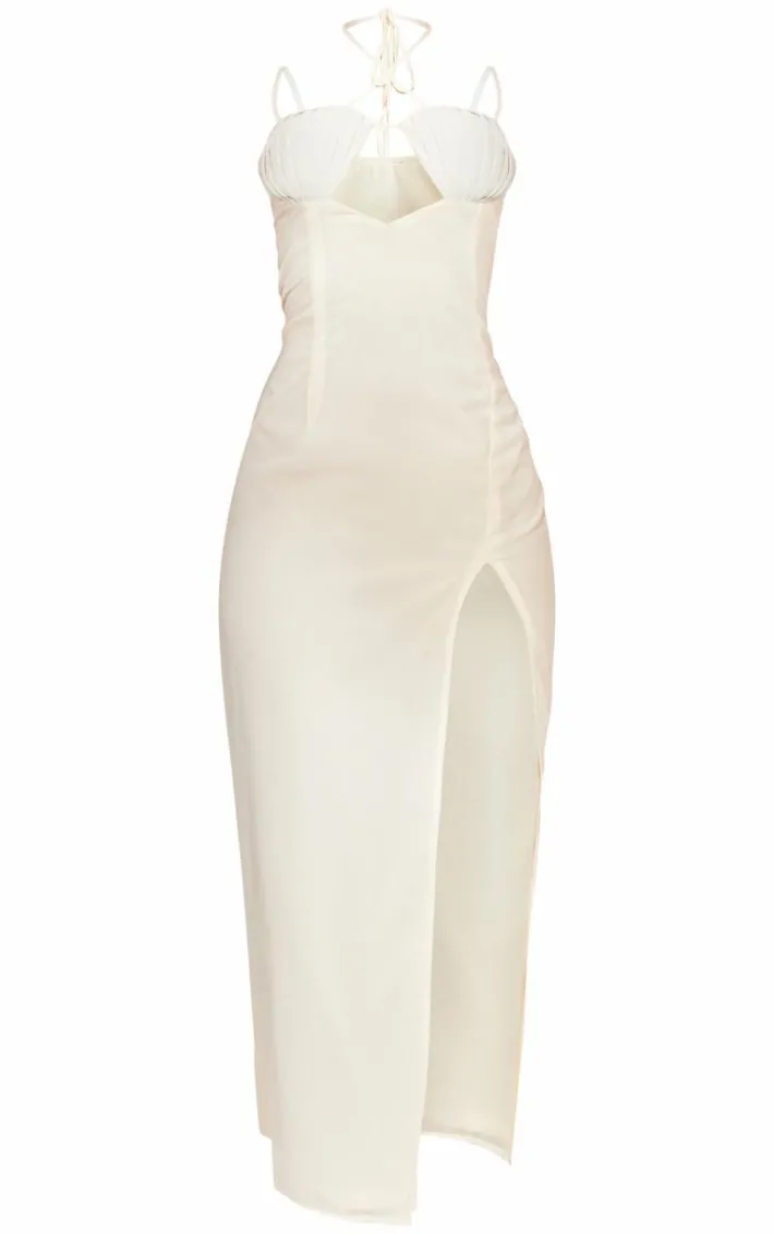 Look unreal this season in this petite cream chiffon strappy split maxi dress. Brought to you in a cream chiffon material with a strappy design and split detail, this maxi dress is dreamy. Style with gold strappy heels and accessories for a figure-flattering fit. What are you waiting for?
