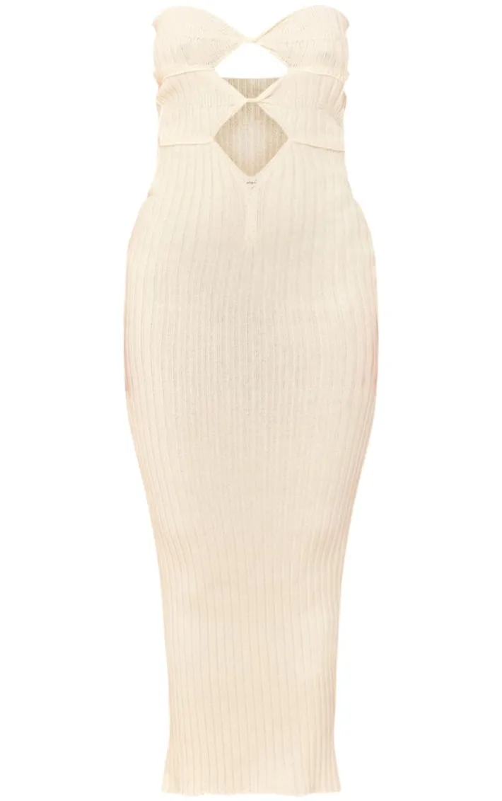 Step into the new season in style with this petite cream knit cut out maxi dress. Brought to you in a cream hue knit material with a cut out design, a bandeau neckline and a figure-flattering maxi fit, how can you resist? Style this maxi dress with sandals, sunglasses and simple accessories for an effortlessly chic look we’re loving.