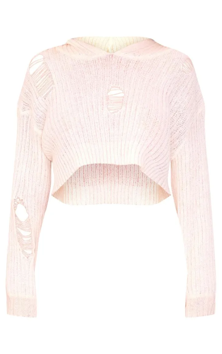 Amp up your off duty wardrobe with this petite cream knitted extreme cropped distressed sweater. Brought to you in a cream knitted material featuring an extreme crop length and distressed detailing, how can you resist? Style this unreal sweater with the matching skirt, heels and accessories for an unreal look.