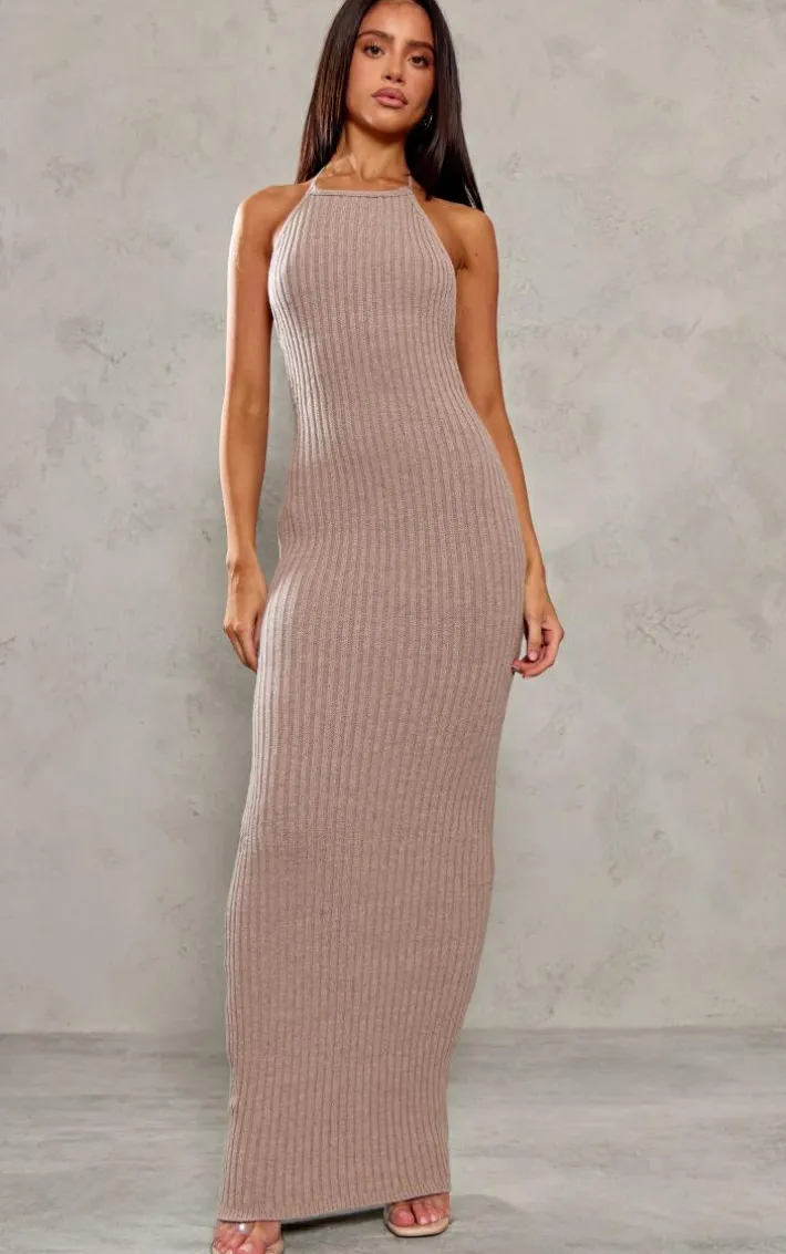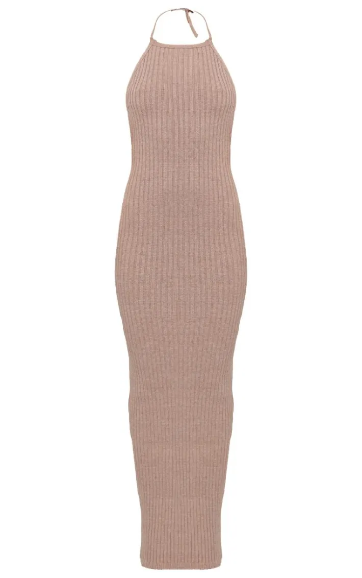 Make weekend styling look effortlessly chic in this petite deep taupe knitted open back maxi dress. Brought to you in a deep taupe knitted material with an open back design and a figure-flattering maxi fit, how can you go wrong? This maxi dress is perfect for dressing up or down to suit your plans. Just add heels and gold accessories to complete the look.