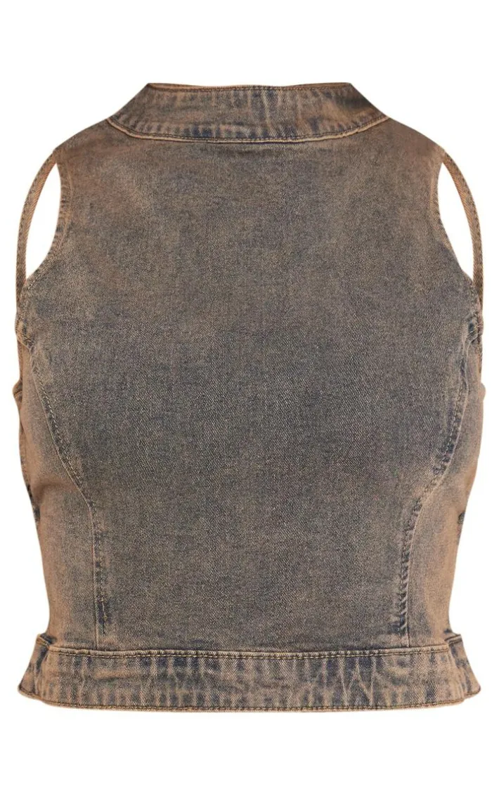 Switch up your new season style game with this petite dirty grey denim backless top, it is the perfect versatile piece to dress up or down. Made using a dirty grey denim material with a backless design and a figure-flattering fit, this petite top will earn you all the likes. Style this denim top with the matching jeans, clear slip-on heels and gold hoop earrings for a look everyone will want.