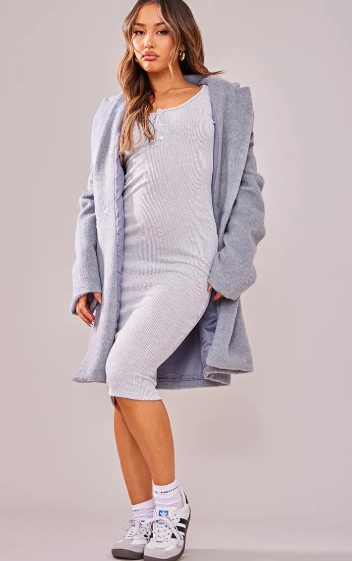 This petite grey marl long sleeve brushed rib button detail midi dress is the ultimate must-have for your new season wardrobe. Made from a grey marl brushed rib material with button detail and long sleeves, what’s not to love? Seriously flattering and super easy to style, this petite midi dress has everything you’re looking for and more. Team with chunky sneakers and everyday accessories for a fool-proof finish.