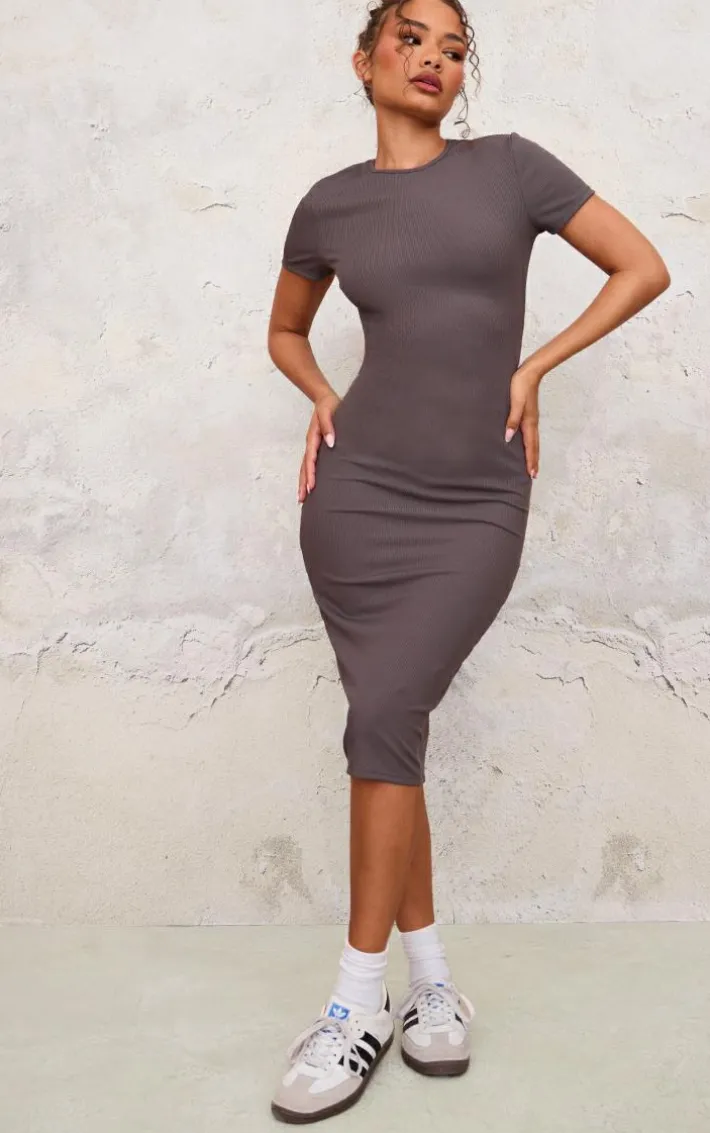 Your wardrobe is calling out for this petite grey ribbed short sleeve crew neck midi dress for your new season look.With a grey ribbed material and a short sleeve design, how could you resist? Its crew neck detail and midi length are all you need to feel chic. Team with a maxi a pair of sneakers, and your fave gold accessories for a weekend-worthy finish.