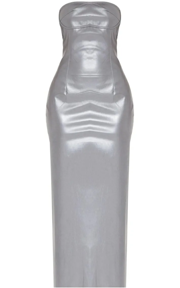 Dare to make a statement this season with this petite gunmetal grey metallic midaxi dress, you’re sure to be at the center of attention. With a gunmetal grey metallic material, a midaxi length and a figure-worshipping fit, this petite dress is here to solve all your ‘what to wear’ dilemmas. Style this midaxi dress with clear slip-on heels and minimal accessories for a fiercely feminine finish.