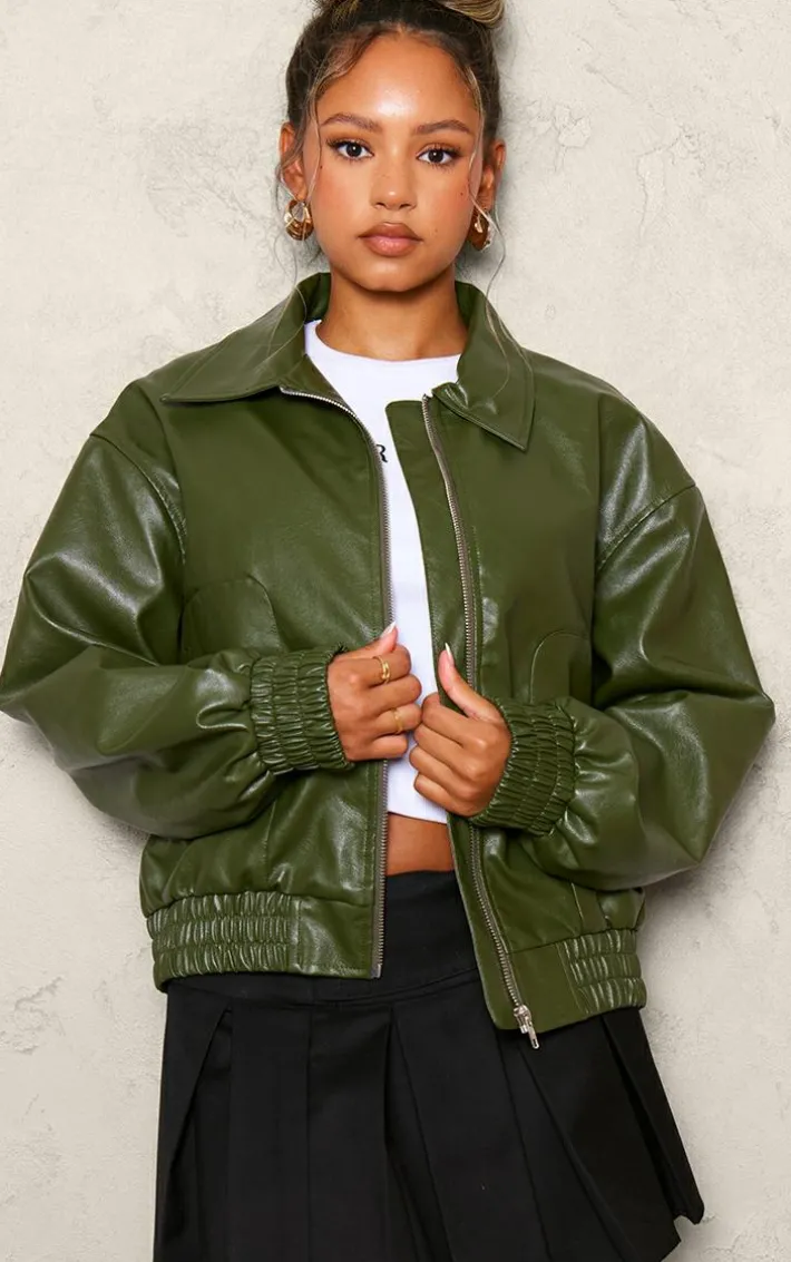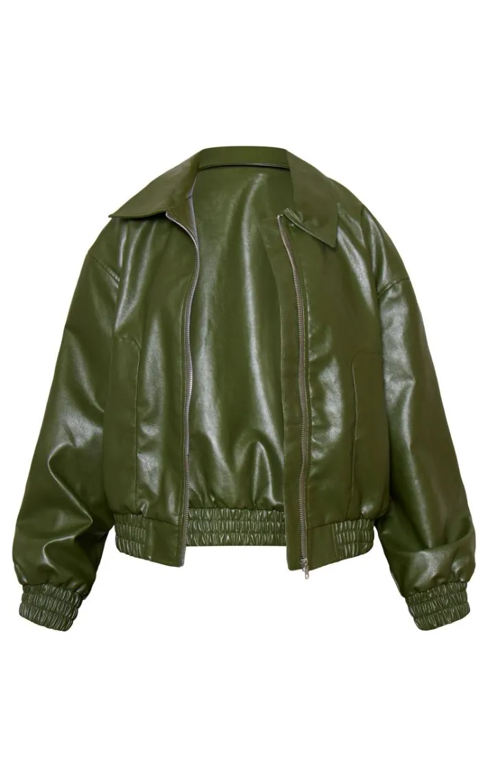 Stay cosy and stylish in this petite khaki faux leather oversized bomber jacket. Brought to you in a khaki faux leather material with an oversized design, this bomber jacket is at the top of our wish list. Style with a white tee, mini skirt and fresh kicks for an off-duty vibe we can’t get enough of.