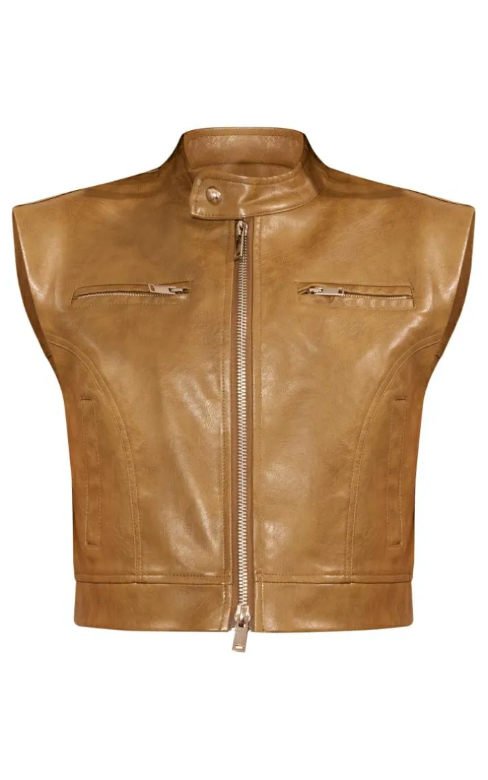 Bring all the edge into your new season wardrobe with this petite khaki sleeveless collared faux leather vest, we’re obsessed. It is brought to you in a khaki faux leather material with a sleeveless design and a zip up fastening, your outfit of the day just got a serious upgrade. Just add some statement shorts, knee high heeled boots and a shoulder bag for a look no one will forget.