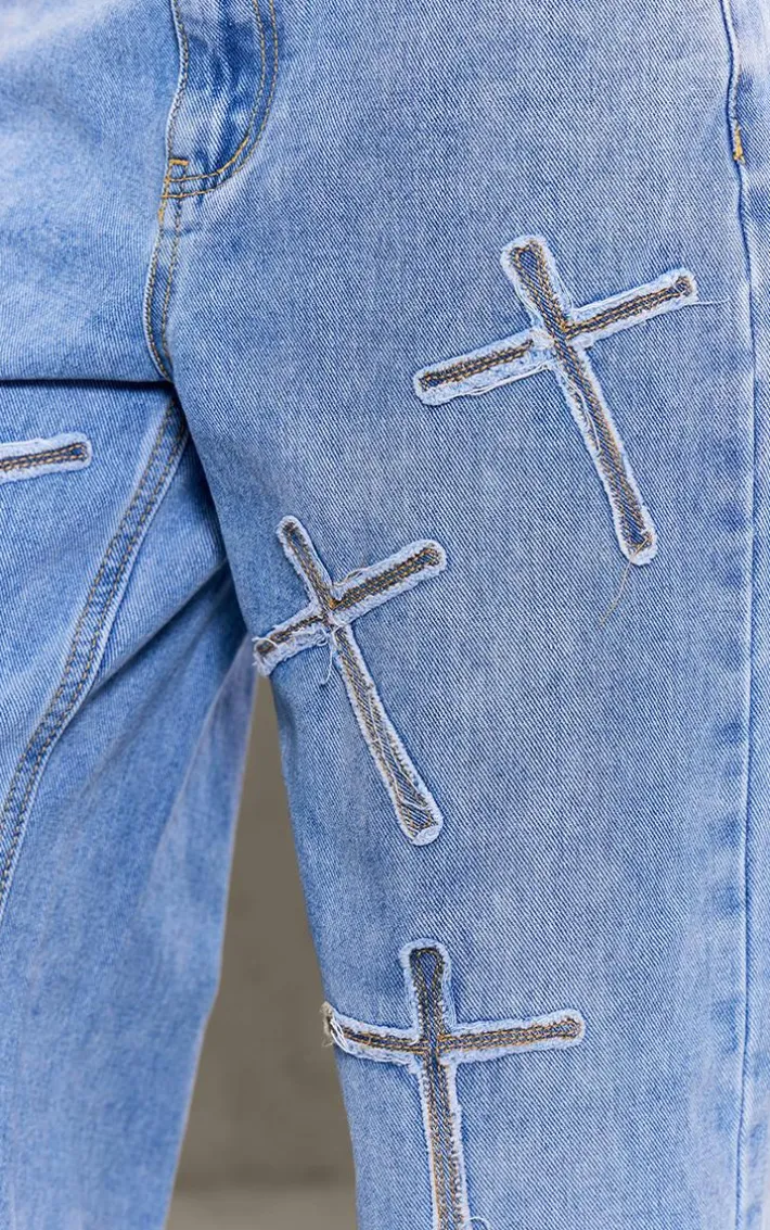 Amp up your new season wardrobe with these petite light blue distressed cross detail straight leg denim jeans. Brought to you in a light blue denim material with distressed cross detailing and a straight leg fit, what more could you want? Style these denim jeans with a white top and sneakers for an everyday look that is sure to gain all the compliments.