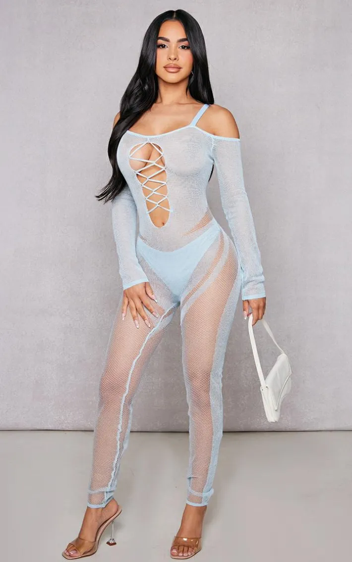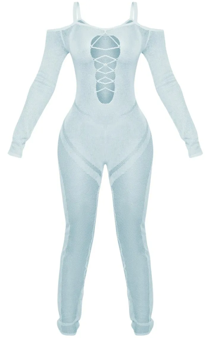 Show off your shape this season in this petite light blue knitted sheer jumpsuit. this unreal jumpsuit is brought to you in a light blue knitted material that will have you feeling confident no matter what. With a sheer design, you’ll be center of attention wherever you go. Simply style with some gold hoops and your fave clear heels complete the look we are loving.