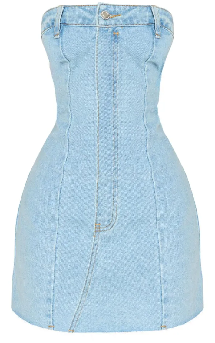 Add some seriously chic vibes to your new season wardrobe with this petite light blue wash denim bandeau mini dress, you’re sure to be earning all the chic vibes whatever your plans. This dress includes a light blue wash denim material with a bandeau design and a mini length, it’s a definite yes from us. Team this petite mini dress with clear slip-on heels and your fave accessories for the perfect weekend-ready fit.