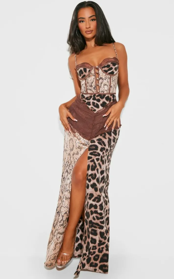 Add some seasonal prints to your wardrobe with this petite multi print lace detail maxi dress. We’re obsessed with its multi pattern fabric and different textures, including delicate lace and leopard print material. Style this maxi dress with a pair of clear toe heels and your best going-out accessories for a look that will have all eyes on you.