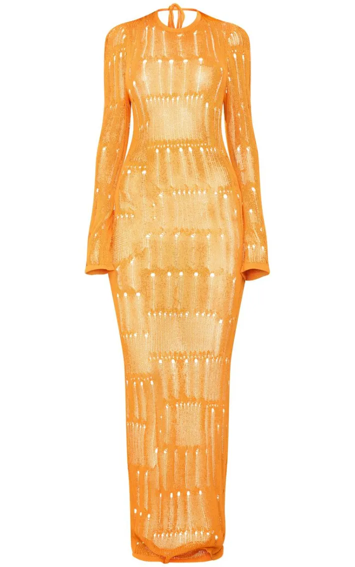Turn heads and make a statement this season with this petite orange knitted open back long sleeve maxi dress. Brought to you in an orange knitted material featuring an open back design and long sleeve style, how can you resist? Style this unreal maxi dress with a mini bag and heels for a combo we’re crushing on.