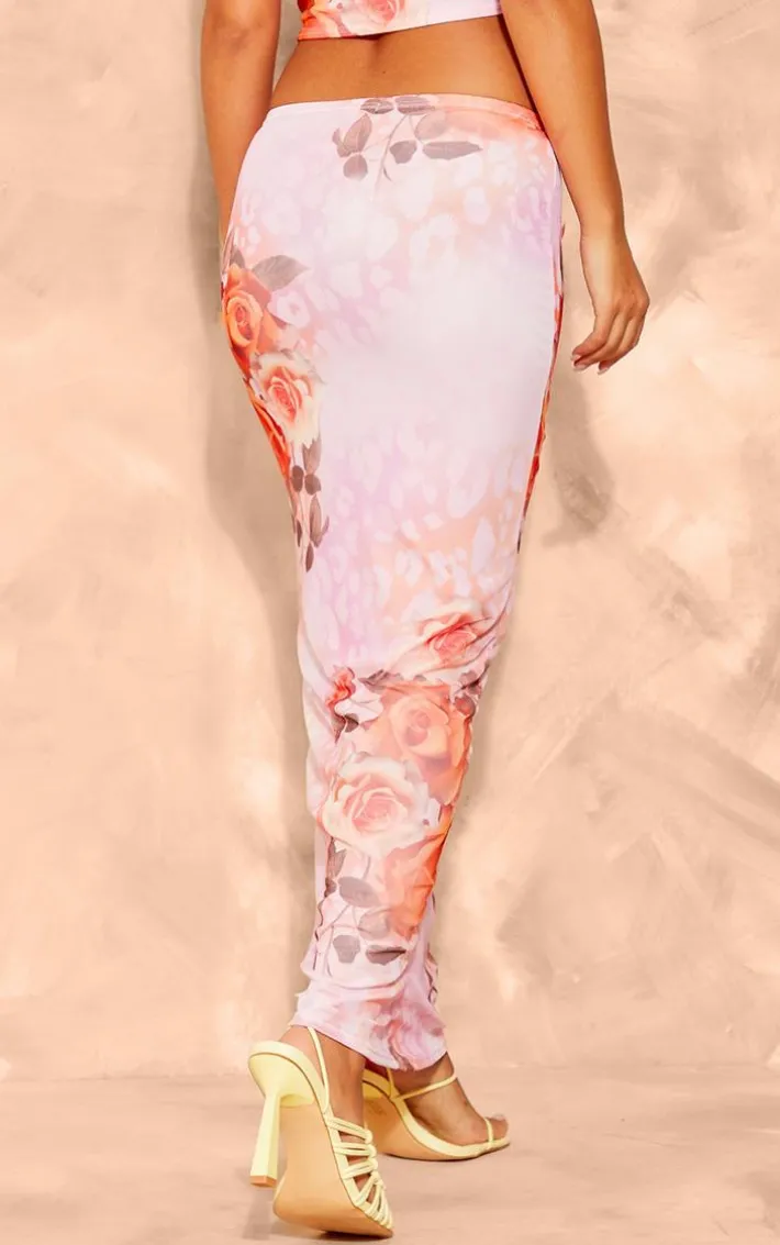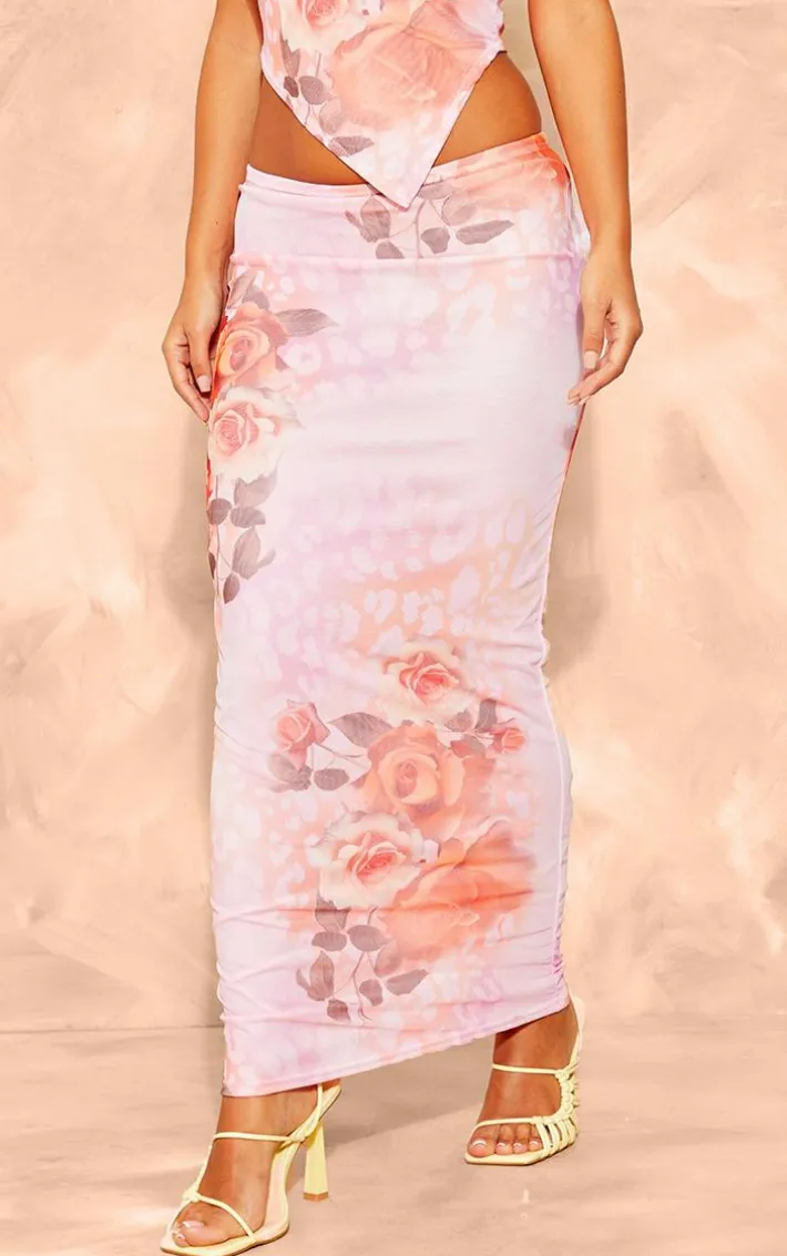 Prepare to steal all the stares in this petite pink printed mesh low waist maxi skirt. Brought to you in a dreamy pink printed mesh material with a low waist design and a flattering maxi fit, how can you not fall in love? Pair this maxi skirt with the matching top, heels and accessories for a look that is perfect for your next occasion.