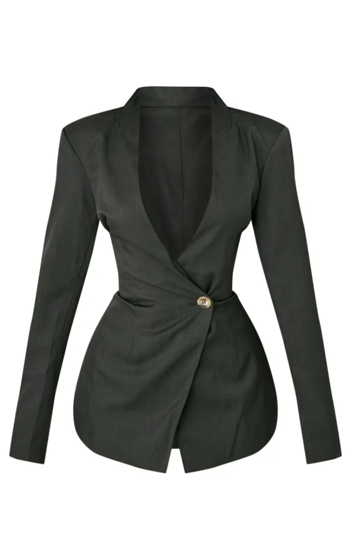 How unreal is this petite premium charcoal asymmetric blazer? We can’t get enough of its edgy charcoal hue and asymmetric design, what more could you want? You’ll be reaching for this on your next brunch date and beyond. Style with some knee length leather look boots and silver accessories to complete the look.