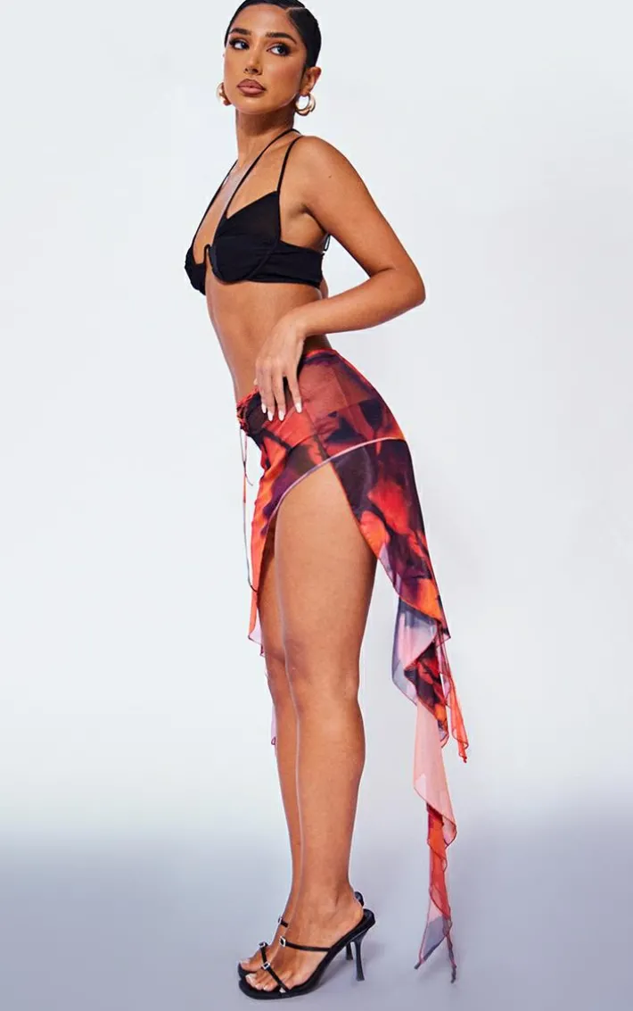 Turn heads wherever you step foot with this petite red rose mesh printed asymmetric micro mini skirt. Brought to you in a red mesh material with a rose printed design, you are sure to tap into your feminine side with this micro mini skirt. Its asymmetric detail brings all the edge. Team with your fave bikini and heels to finish off the look.