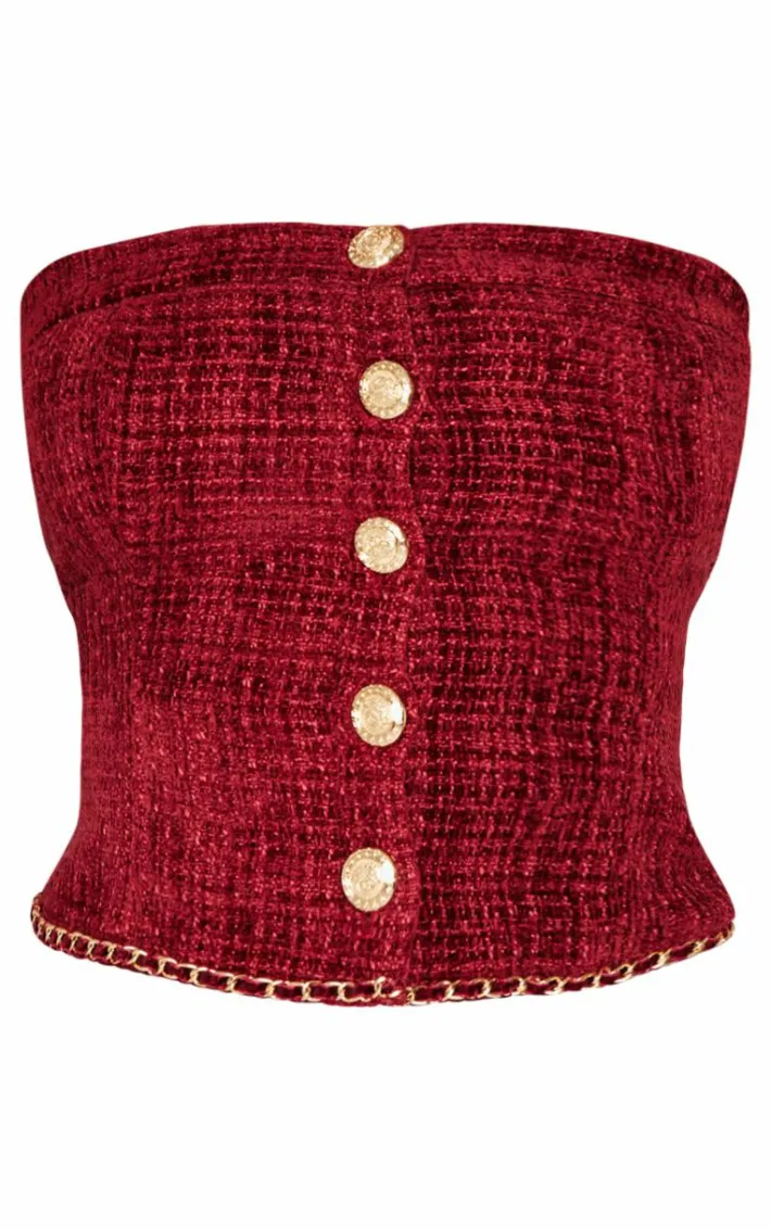 Be sure to make a statement in this petite red twill bandeau button detail top. Brought to you in a red twill material with a bandeau neckline and button detailing, how can you resist? Pair this red top with the matching skirt, heels and minimal accessories for a look that will turn heads wherever you go.