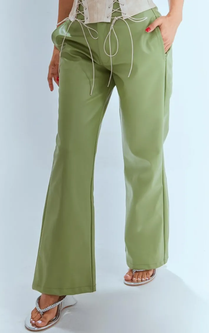 Take you weekend look to new heights with these petite sage faux leather straight leg pants. Brought to you in a dreamy sage hue faux leather material with a straight leg design, what more could you want? Style these faux leather pants with a flattering corset top and heels for a look that is sure to have eyes on you for all the right reasons.