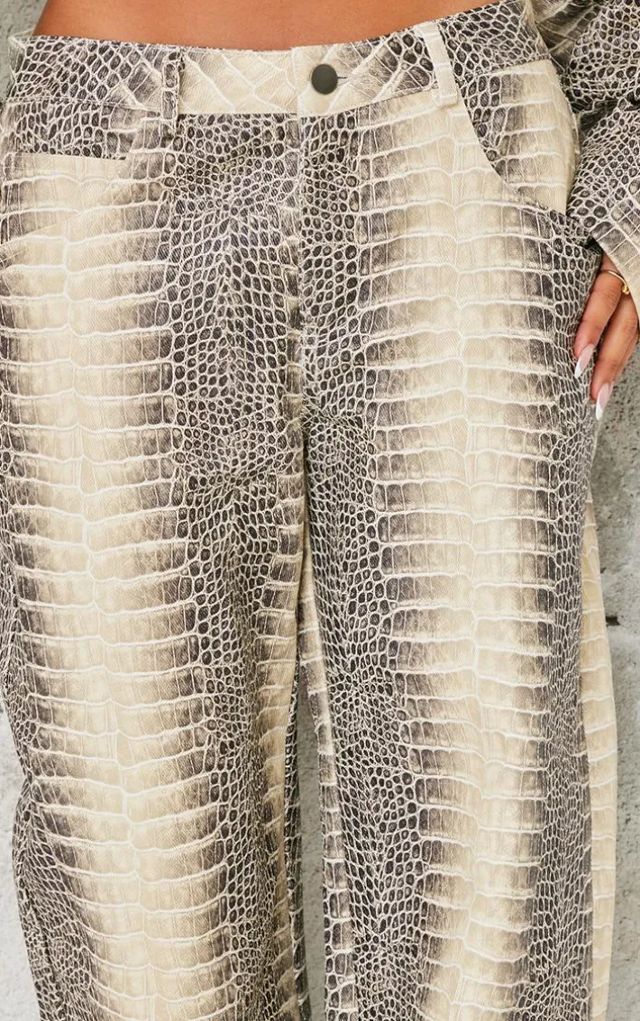 Make a statement in these petite snake print low waist wide leg pants. Brought to you in a snake print material with a low waist design giving you a flattering fit like no other, how can you resist? Team these wide leg pants with the matching top, a statement bag and your fave shades for a fool proof finish.