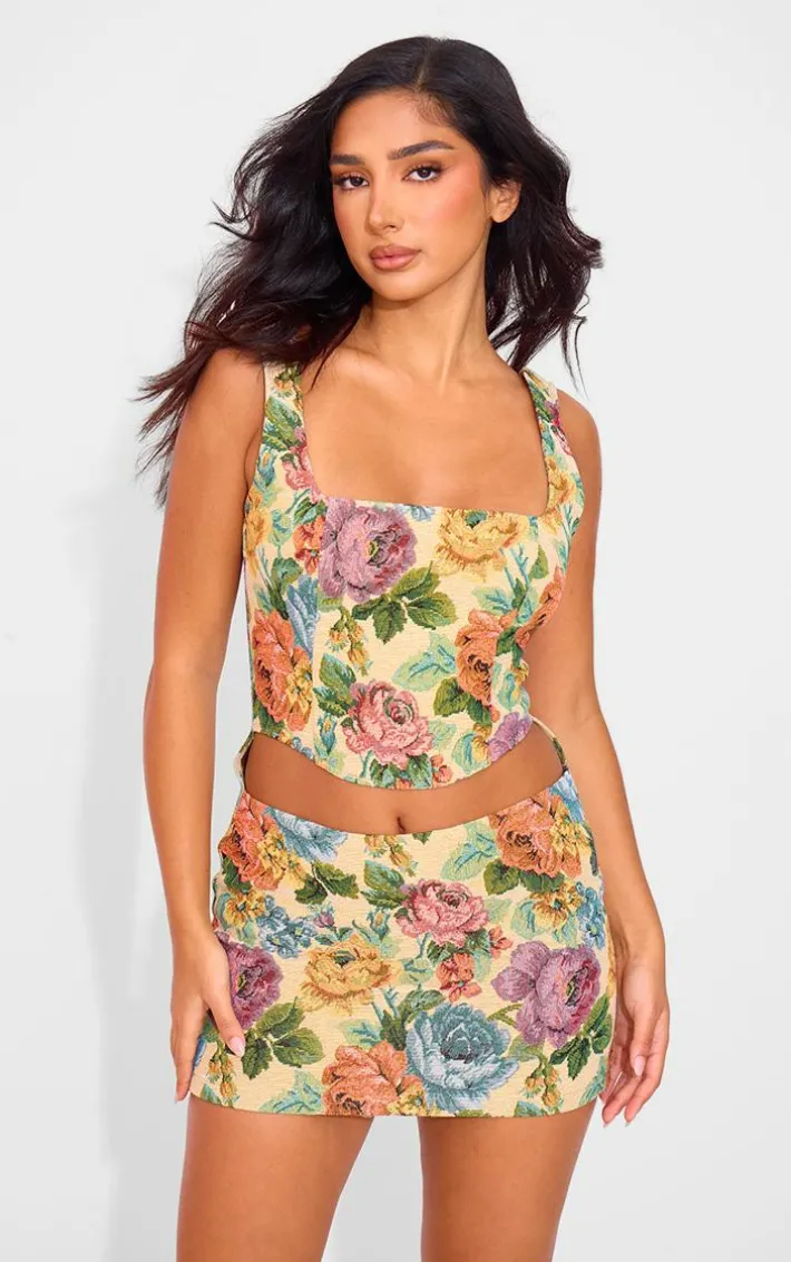 Inject some of this seasons must-have prints into your wardrobe with this petite stone floral jacquard cut out mini dress. Brought to you in a stone floral jacquard material with a cut out front design, this mini dress is unreal. Style with heels and statement jewelry for a look we’re loving this season.