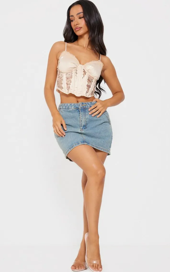 Get heads turning with this petite stone satin corset with lace details. Brought to you in a stone satin material with a corset design, what’s not to love? Its lace detailing is all you need to tap into your feminine side. Team with your fave accessories and a pair of heels to finish off the look we are obsessing over.