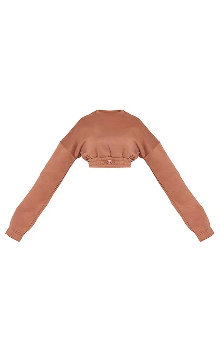 Say hello to your new season staple with this petite tan crop elasticated hem sweat top. Brought to you in a tan material with a crop length and an elasticated hem, how could you say no? This sweat top can be styled effortlessly with the matching bottoms and a pair of comfy sneakers for a look that will turn heads for all the right reasons.
