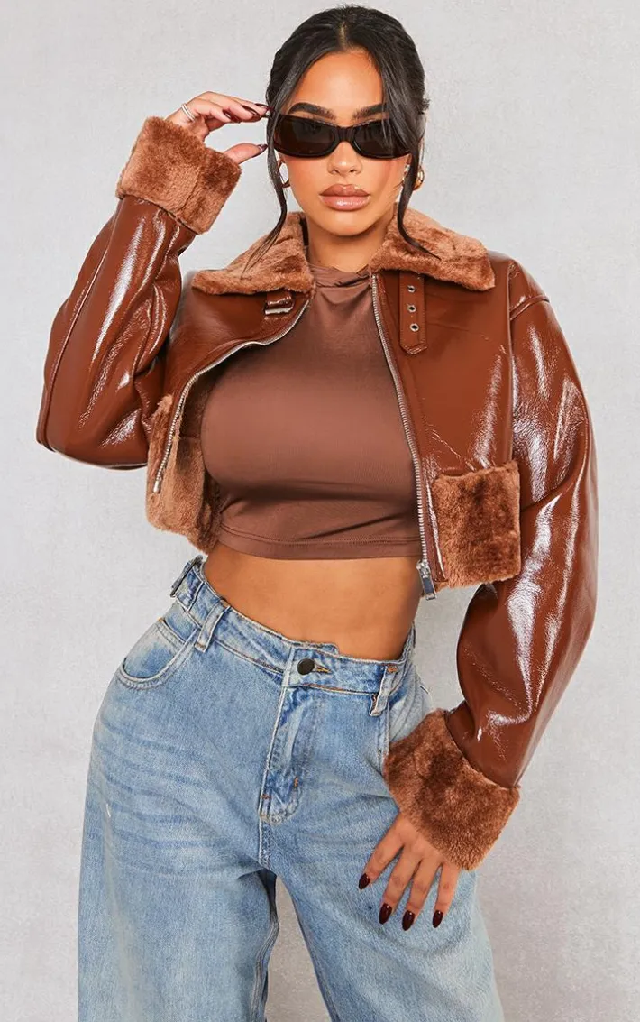 Step out in style with this petite tan faux fur trim buckle collar vinyl cropped jacket. This unreal jacket is made from a tan material with a faux fur trim and a buckle collar, you will be setting major trends wherever you step foot. Its vinyl cropped design is all you need to bring all the edge. Team with your fave accessories to elevate the look even further.
