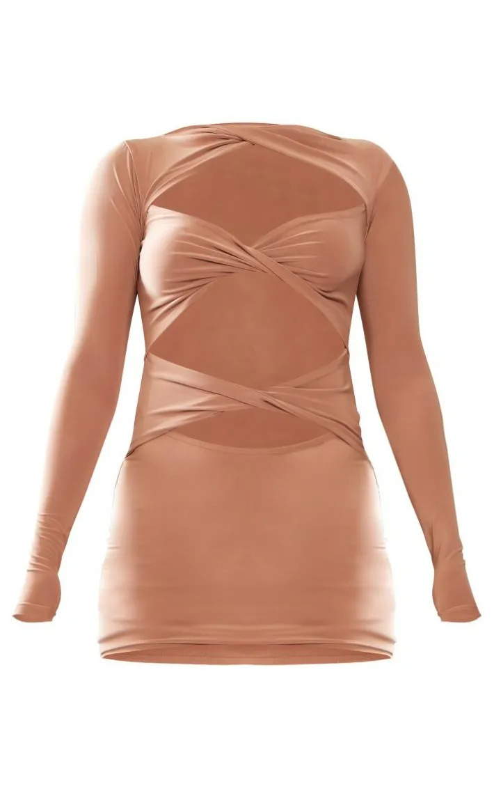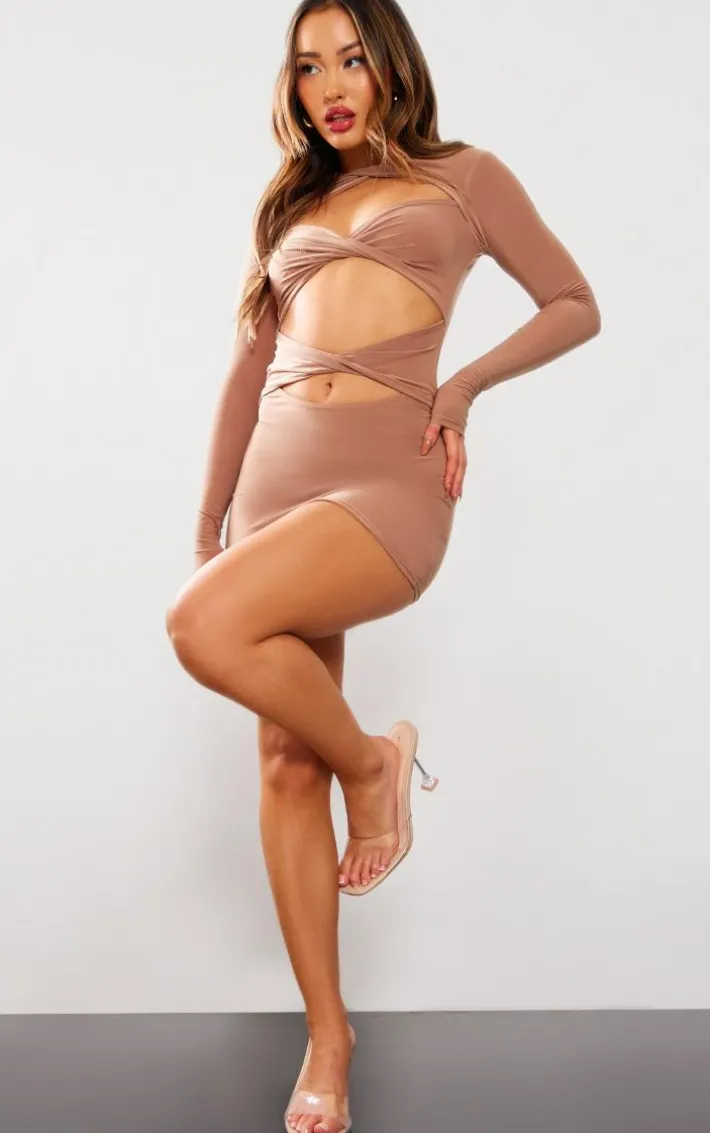 This petite taupe cut out long sleeve mini bodycon dress is here to solve all of your ‘what to wear’ dilemmas this weekend. Brought to you in a taupe hue material with long sleeves, a cut out design and a bodycon fit, you really can’t go wrong. Style this mini dress with your highest heels and some glam accessories for a look that is sure to make heads turn all night long.