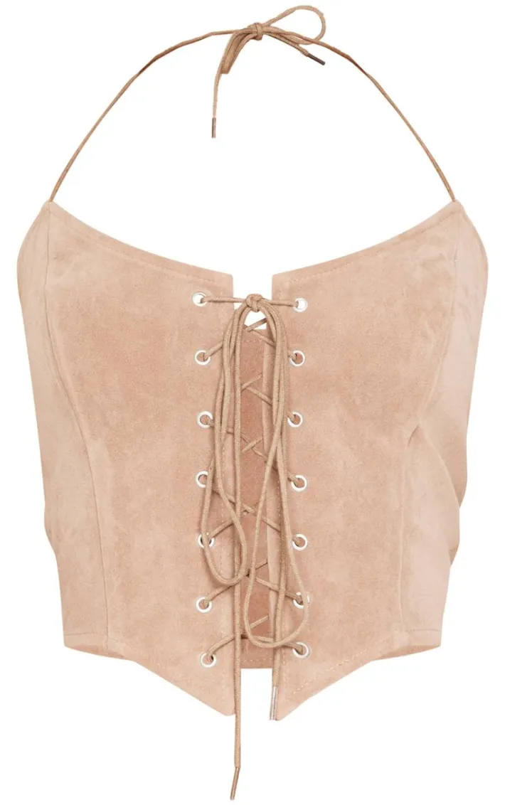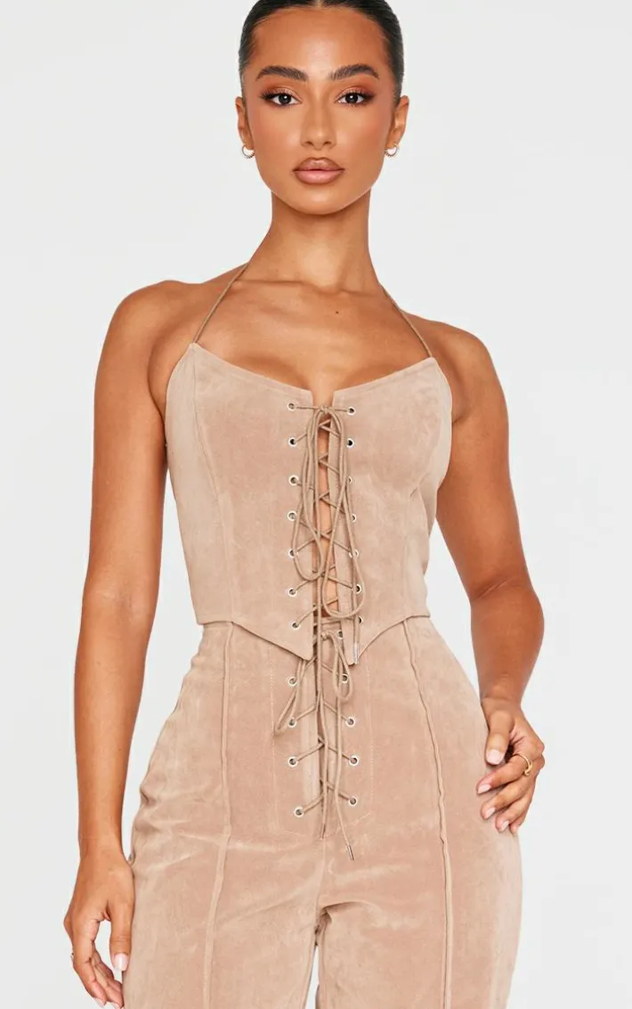 For a look that won’t go unnoticed, opt for this petite taupe faux suede lace up corset top. Brought to you in a neutral taupe hue, with a luxe faux suede material and lace up design, what’s not to love? Simply pair with minimal accessories and the matching pants for a complete look.