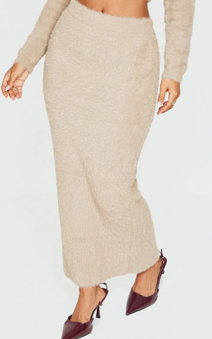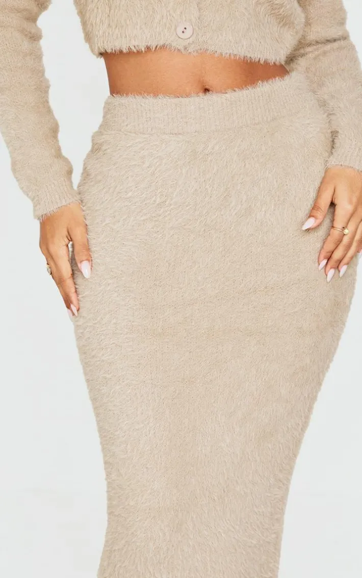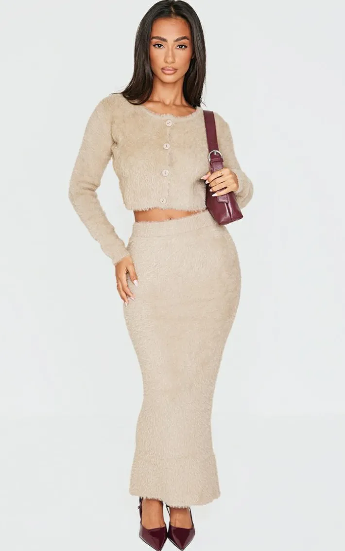You don’t have to sacrifice comfort for style with this petite taupe fluffy knit low waist maxi skirt. Brought to you in a taupe hue fluffy knit material with a low waist design and a maxi fit, what more could you need? Style this maxi skirt seamlessly with the matching cardigan and just add slides for a look that is sure to get you noticed on those chilled days and beyond.