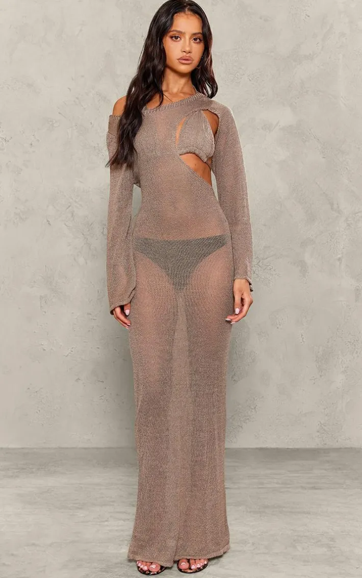 Be the best dressed on any occasion with this petite taupe knit cut out bralet detail maxi dress. Brought to you in a taupe knit material with a cut out design and a maxi length, we are seriously obsessed. This dress with a bralet detail will turn heads wherever you step foot. Team with your fave heels and accessories to finish off the look we are loving.
