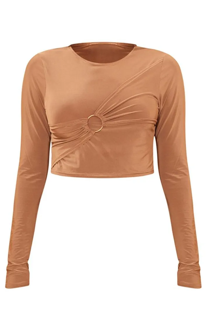 We’re all about neutral hues this season and this petite taupe long sleeve slinky crop top is here to solve all your styling dilemmas. With a taupe slinky material long sleeves and a cropped length, you won’t be able to resist this crop top. Team this with the matching skirt, high heels and accessories for an effortlessly chic look everyone will be asking about.