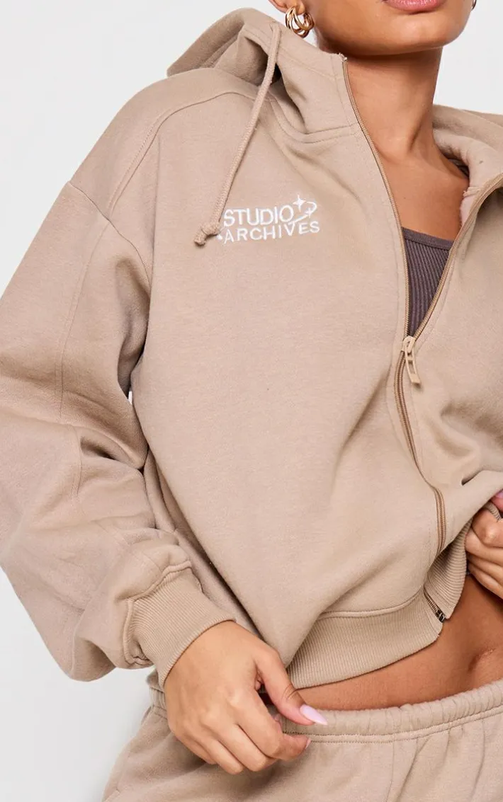 Take on those off-duty days in style with this petite taupe studio archives zip up hoodie. Brought to you in a taupe material with a ‘Studio Archives’ design, we are seriously obsessing over this hoodie. With a zip up fastening, it’s a yes from us. Team with the matching sweatpants and a basic tee for a look everyone is loving.