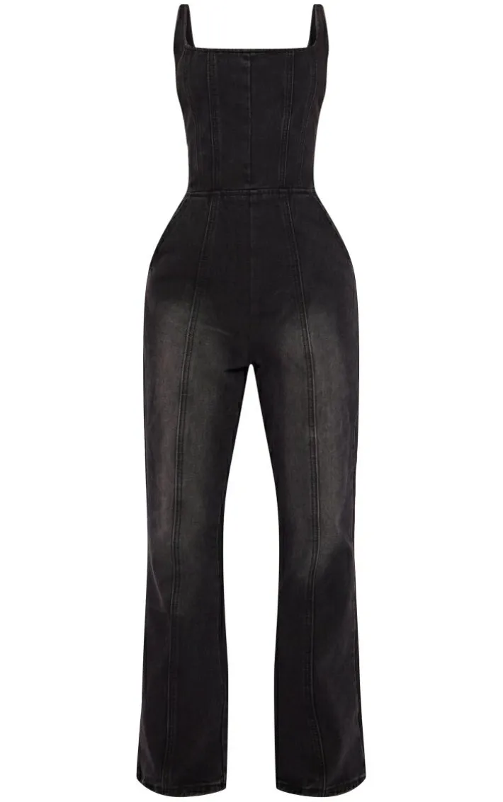 Got plans for the weekend ? Then this petite washed black seam detail bodice flared denim jumpsuit is here to solve all your styling dilemmas. Made using a washed black denim material with a figure-flattering bodice design and a flared style, you’ll be reaching for this petite jumpsuit again and again. Pair it with your fave heels and minimal accessories for a look everyone will want.