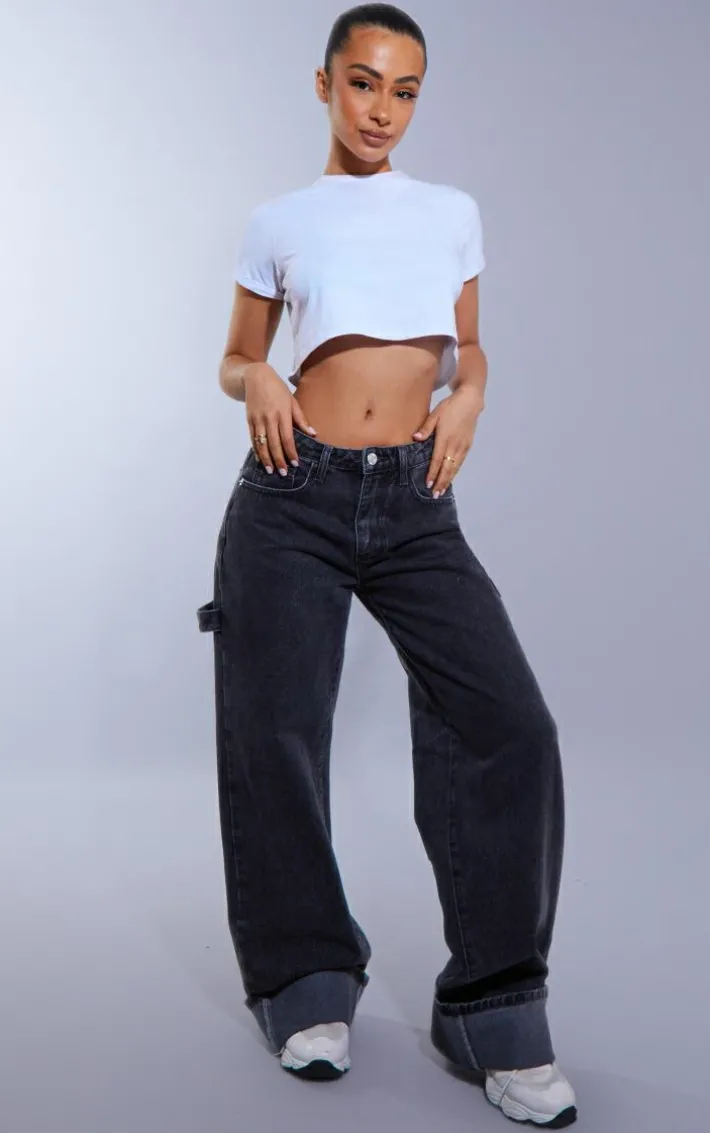 These petite washed black wide leg jeans with strap detail are at the top of our new season wish list. In a washed black hue, these jeans will be a versatile piece in your wardrobe that can be taken from AM to PM. With a wide leg design, what more could you want doll? Style with some comfy sneakers and a basic white tee to complete the look everyone is loving.