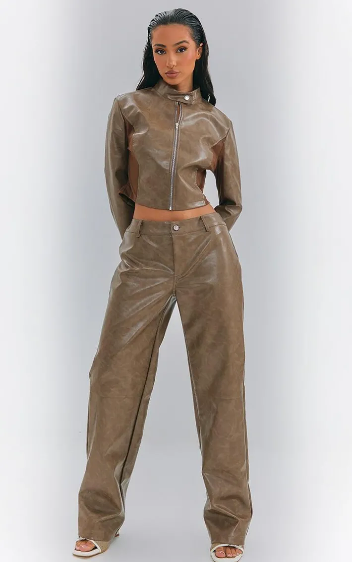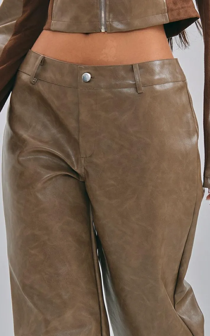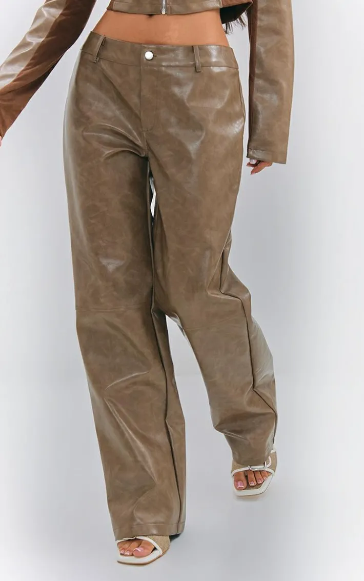 Bring all the drama to your new season wardrobe with these petite washed brown faux leather straight leg pants, they’re a definite yes from us. Made using a washed brown faux leather material with a straight leg design and a relaxed fit, you’ll be adding these petite pants straight to your basket. Team these faux leather pants with the matching jacket, strappy heels and minimal accessories for a chic, weekend-ready fit.