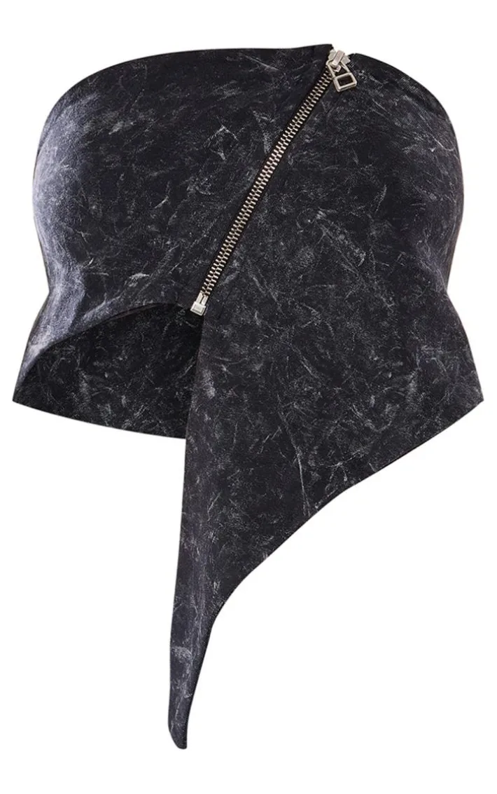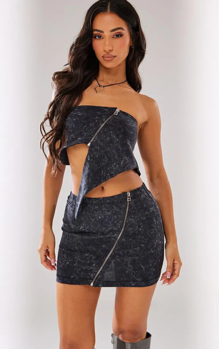 Turn up the heat this weekend with this petite washed charcoal asymmetric detail crop top. Brought to you in a washed charcoal material with an asymmetric hem and a bandeau neckline, what’s not to love? This petite crop top is sure to nail any dress code this weekend and we’re obsessed. Style seamlessly with the matching mini skirt, knee-high heeled boots, and a shoulder bag for a look that everyone will want.