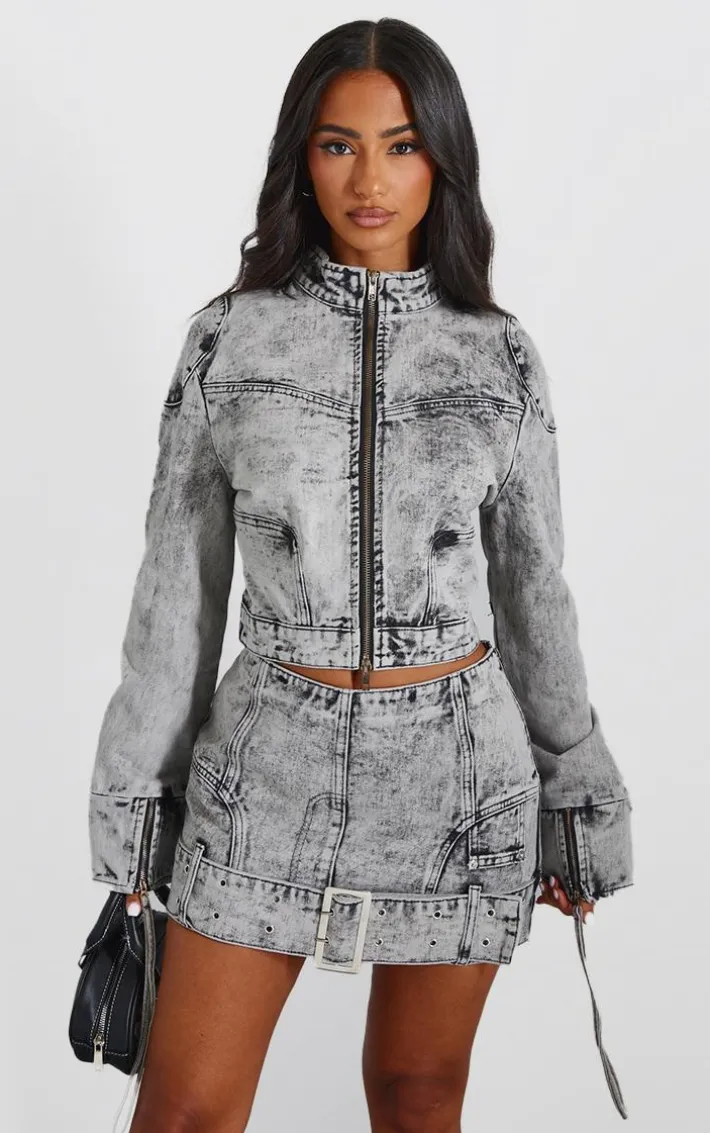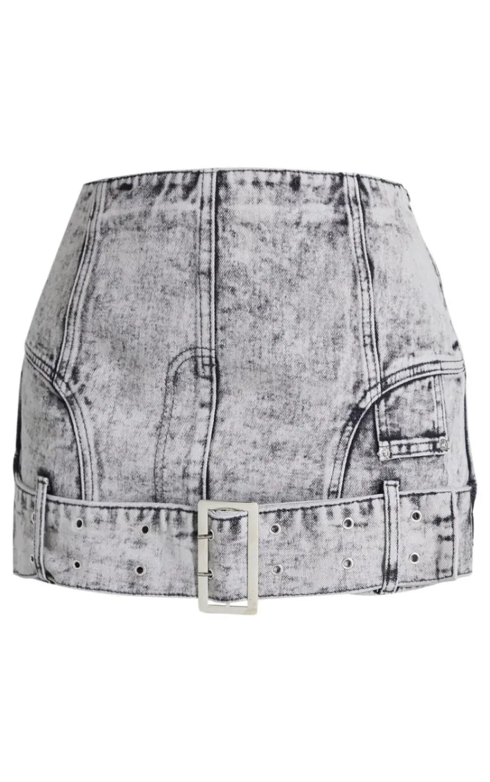 Elevate your off-duty wardrobe with this petite washed grey denim mini skirt with belt detail. Made with the ultimate grey denim wash fabric, chunky belt feature and figure-hugging shape, we are obsessed. Why not pair with the matching denim jacket, a mini bag and mini heels for a flawless look?