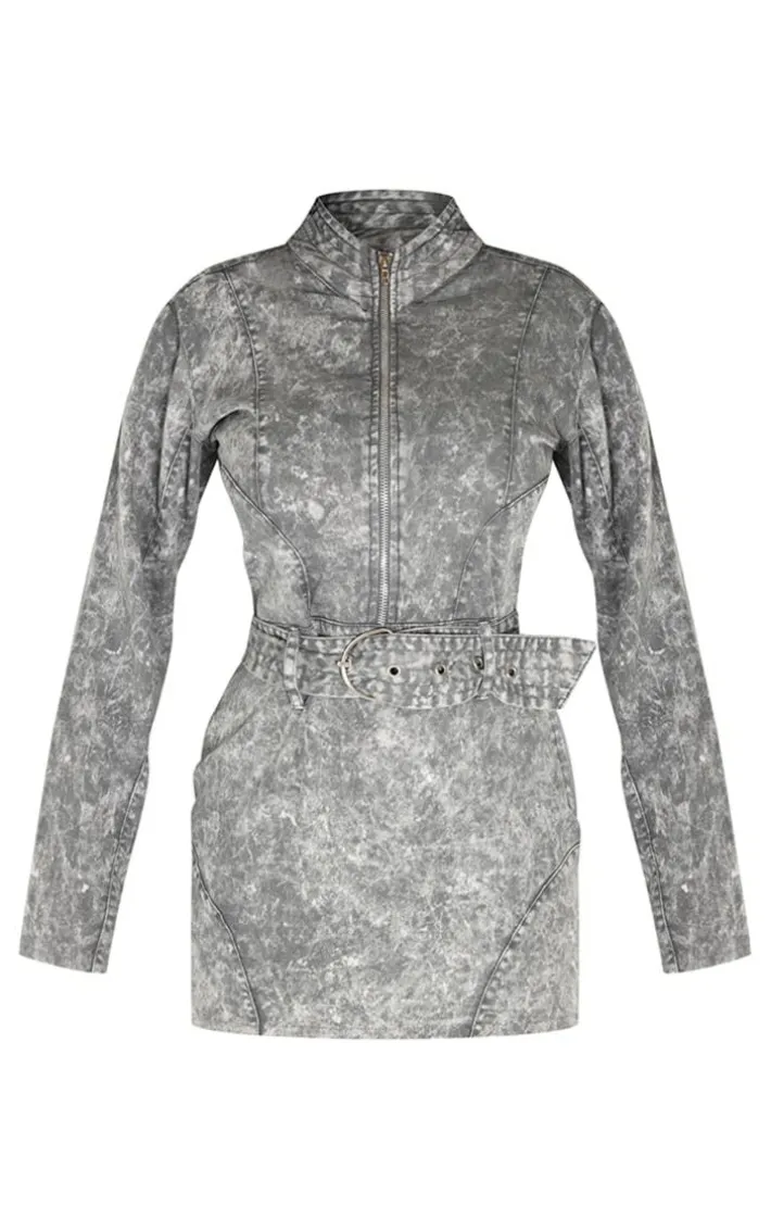 This petite washed grey long sleeve fitted mini dress with belt detail is here to solve all of your weekend wardrobe dilemmas. Brought to you in a washed grey material with long sleeves, a zip fastening and a figure-flattering fit, what more could you want? It’s belt detail is sure to add that extra edge to your look. Simply style this petite dress with knee length heeled boots and statement accessories for a fool-proof finish.