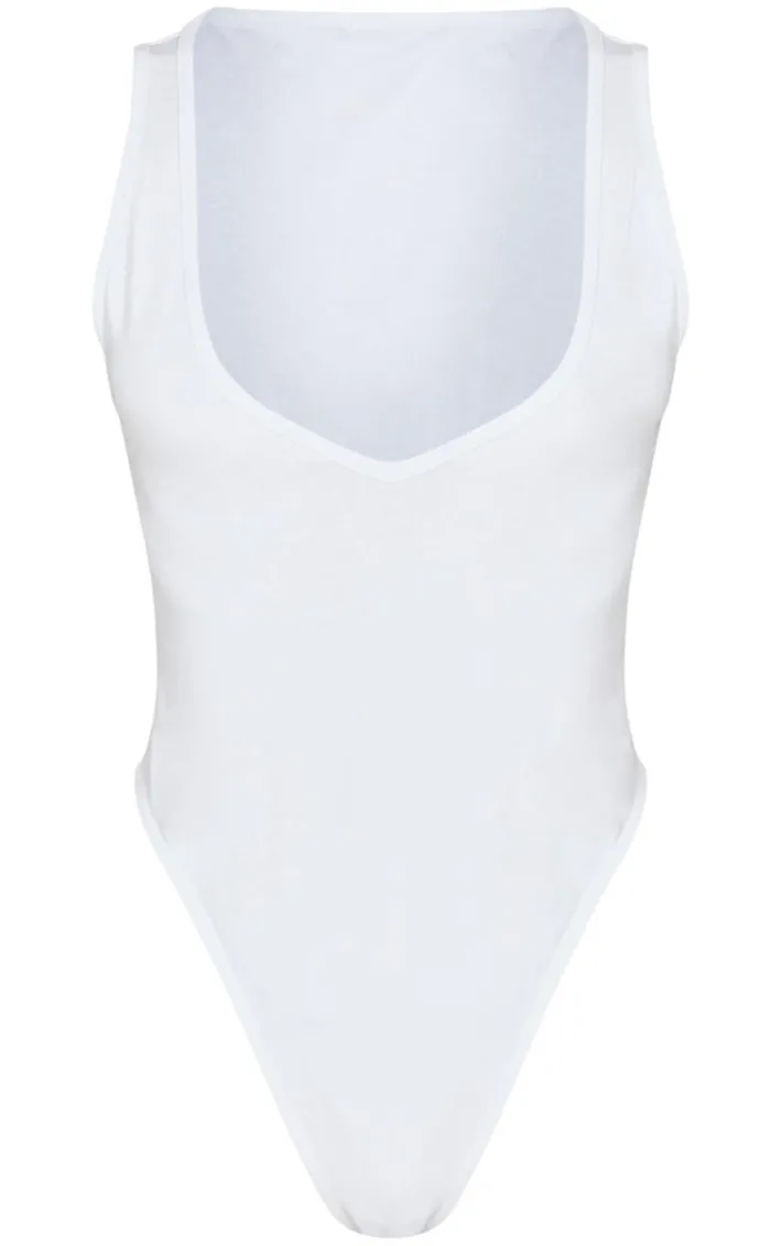 Give your new season wardrobe an upgrade with this petite white basic cotton blend plunge sleeveless bodysuit. With a white basic cotton blend material, a plunge neckline and a sleeveless style, this petite bodysuit will take your look effortlessly from day to night. Team it with wide leg jeans, chunky sneakers and your fave accessories for a combo we’re crushing on.