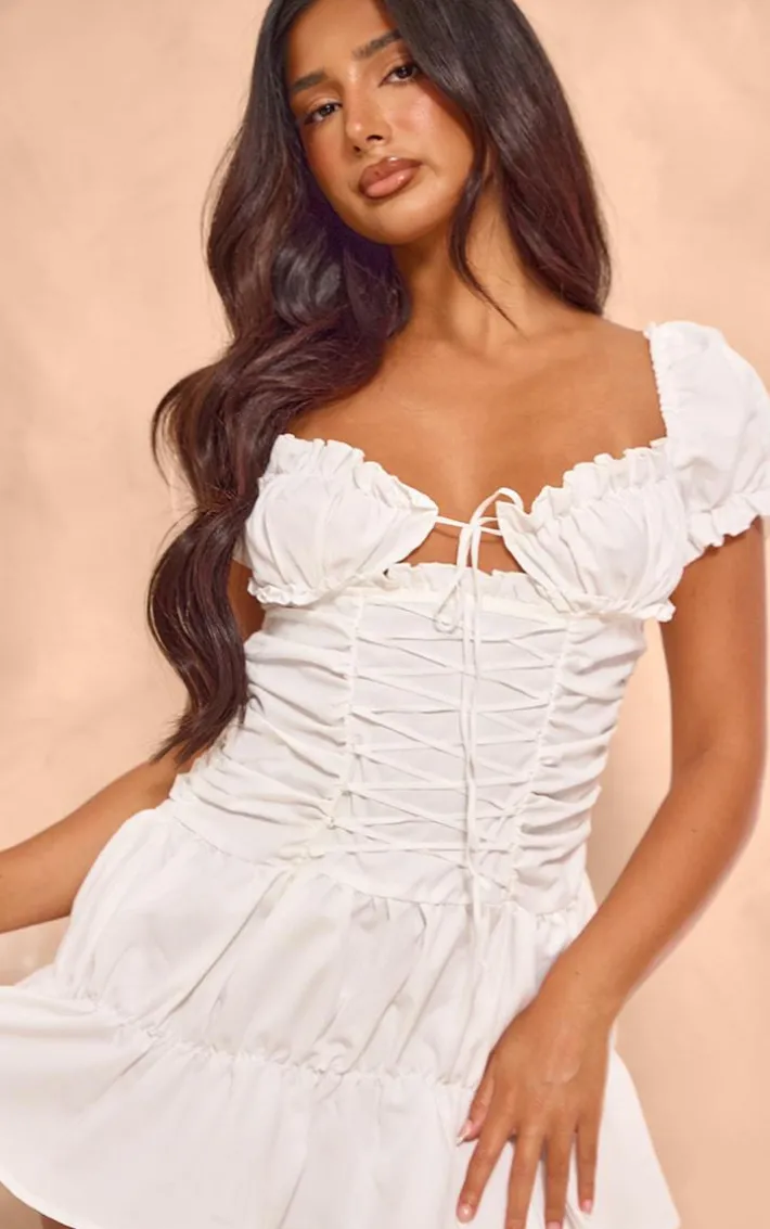 Go for all the effortlessly luxe vibes this season with this dreamy petite white corset lace-up ruffle dress, we’re in love. This petite dress features a white material with a lace-up design and ruffle detailing, it is perfect for dressing up or down. Pair this lace-up dress with sandals and your fave accessories for a look everyone will be obsessing over.