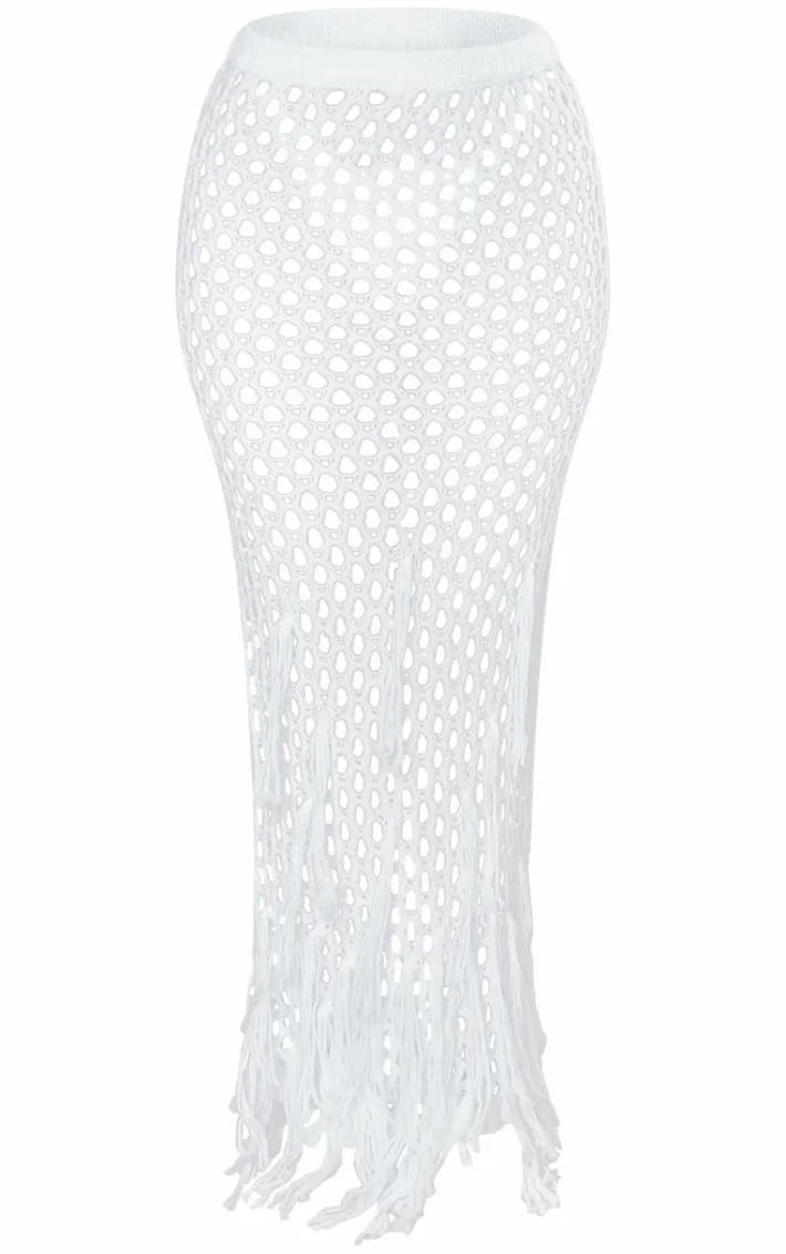 Make a statement this season with our petite white knitted low waist maxi skirt with tassel details. Brought to you in a white knitted material with a low waist fit featuring tassel detailing on the maxi length, we’re obsessed. Style this statement maxi skirt with your best bikini, fave sandals and chic jewelry for a vacay look that will never miss.