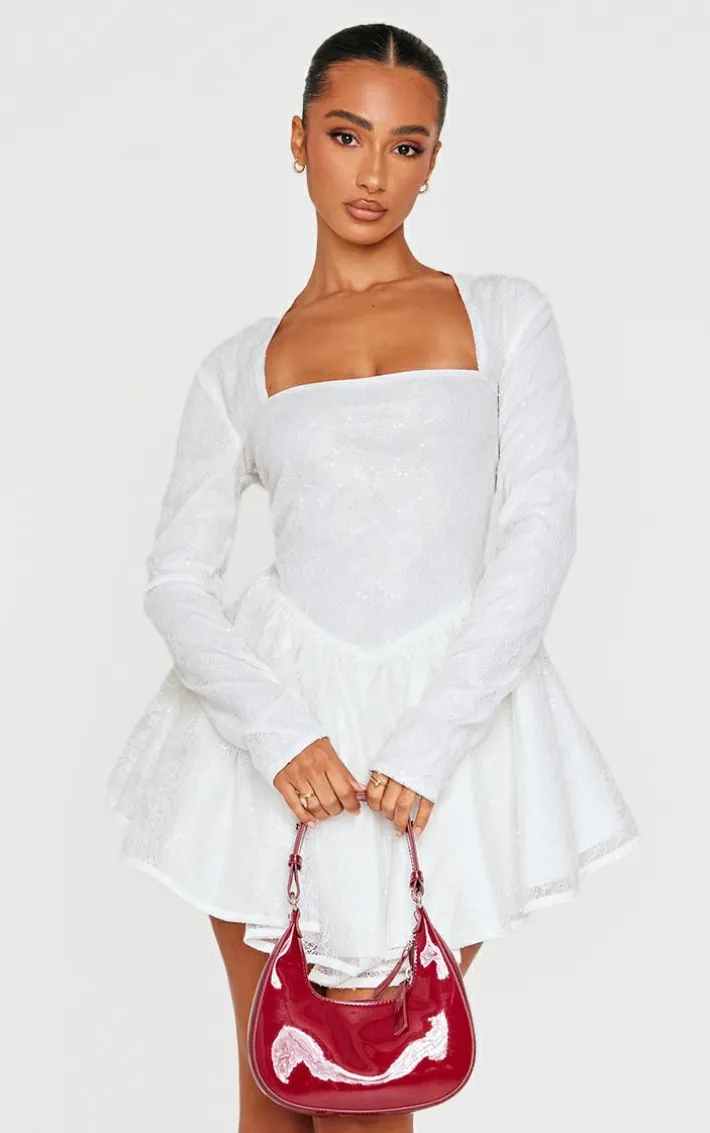 Tap into your chic side with this petite white long sleeve skater hem sequin mini dress. Brought to you in a white material with a long sleeve fit, a skater hem and a sequin design, what more could you want? This mini dress is perfect for those weekend plans and beyond. Team with a statement shoulder bag and your fave heels to finish off the look.