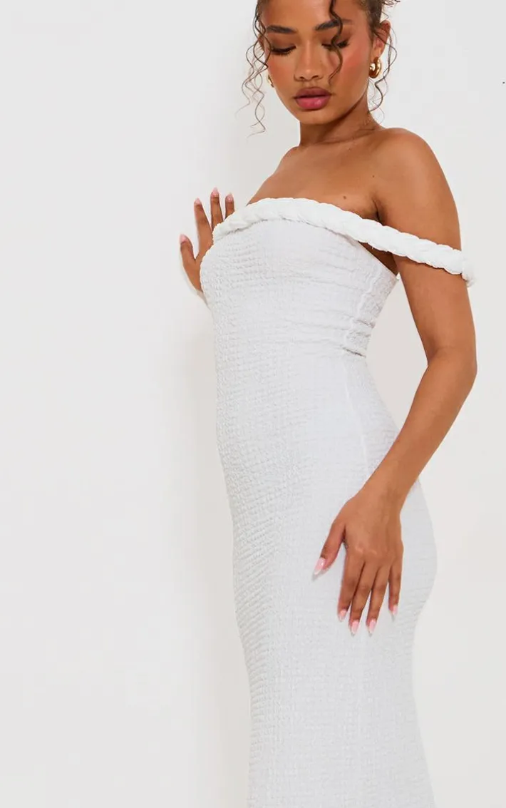 Got an occasion planned? This petite white textured twist detail maxi dress is here to solve all of your ‘what to wear’ dilemmas. Brought to you in a white textured material with twist detailing and a flattering maxi fit, how can you resist? Style this maxi dress with heels and gold accessories for a look they won’t be able to take their eyes off.