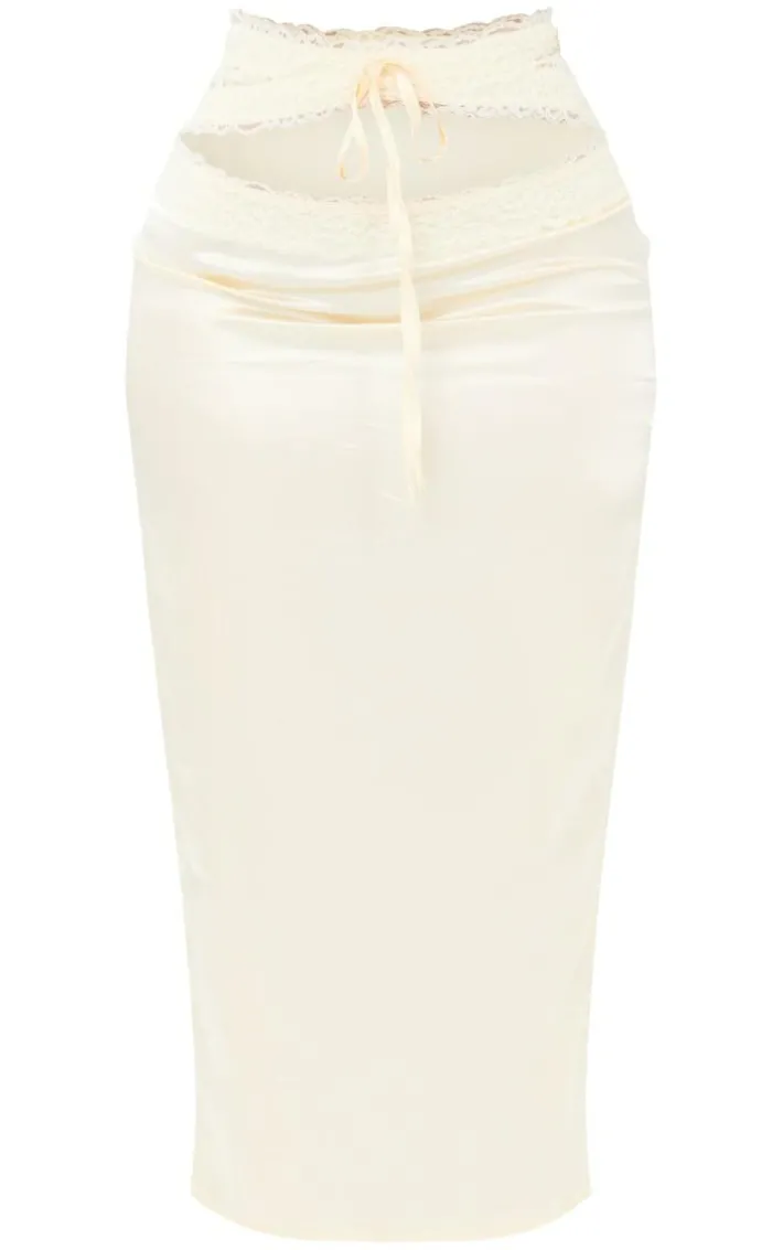 Take your new season look to a whole new level with this Petite yellow satin lace detail midaxi skirt. Brought to you in a dreamy yellow hue satin material that’s bringing all the luxe feels and featuring lace detailing for that extra touch of glam, how can you not fall in love. Style this petite midaxi skirt with a crop top, clear strap heels and statement accessories for a look that is sure to steal the stares wherever you go.