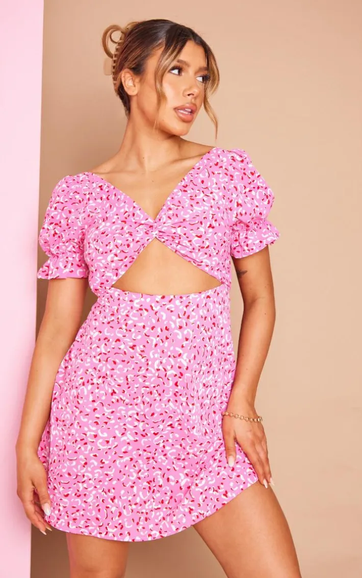 Get maxing out your wardrobe with this pink abstract print twist bust cut out shift dress. This dress is made from a pink material with an abstract print that will have you standing out in any room. With a twist bust and cut out detailing, we are obsessed. Team with some slip on sandals and your fave bag to finish of the look we are obsessing over.
